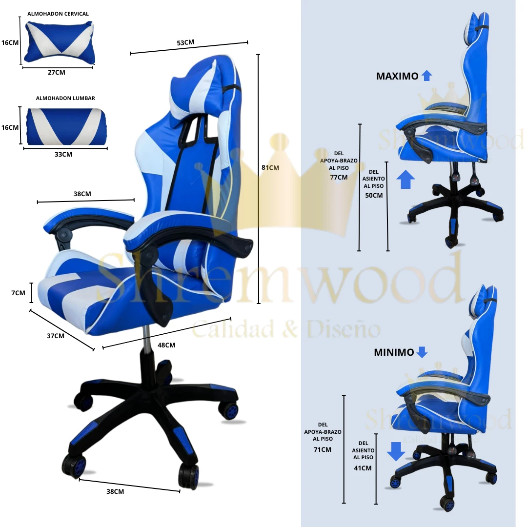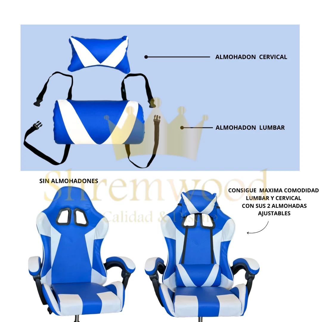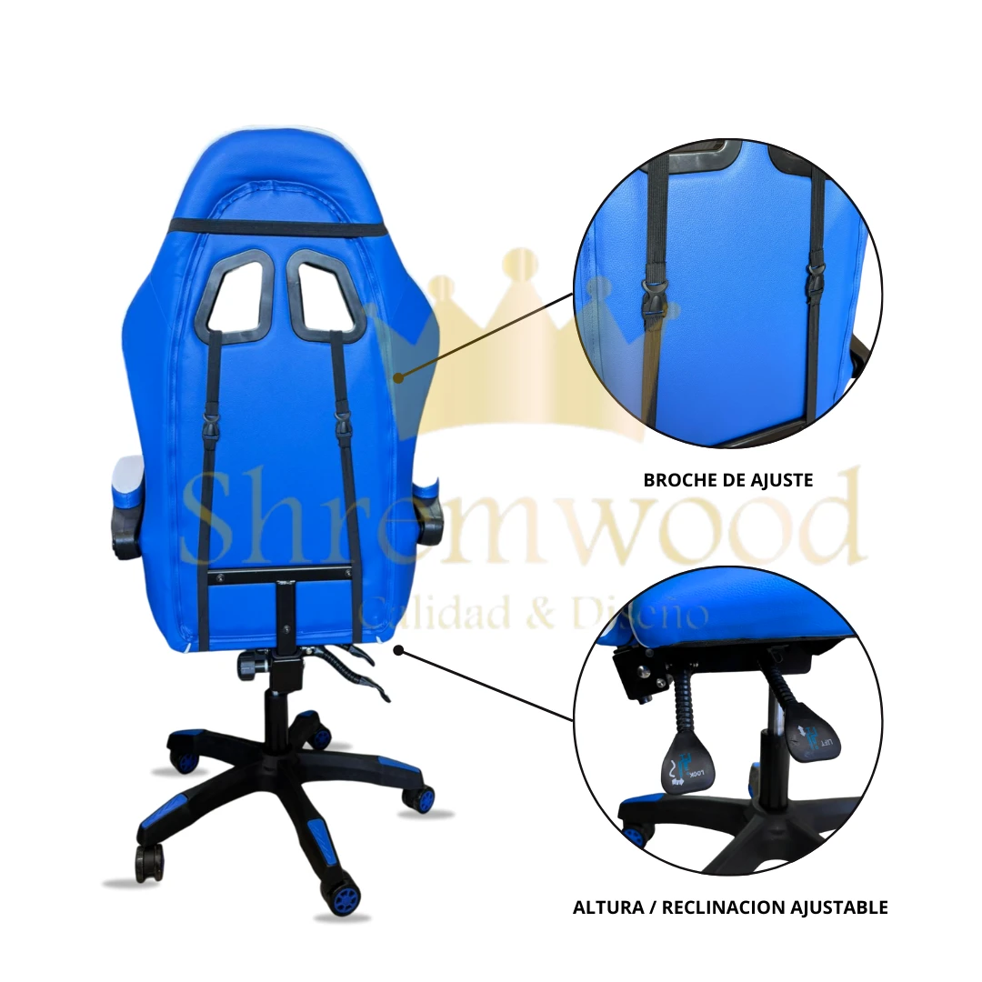 Este sillón gamer GC22AZBL de la marca Shremwood es perfecto para los amantes de los videojuegos. Con su diseño ergonómico y ajustable, te brinda la comodidad que necesitas durante largas sesiones de juego. Además, su respaldo reclinable y apoyabrazos te permiten encontrar la posición ideal para disfrutar al máximo.