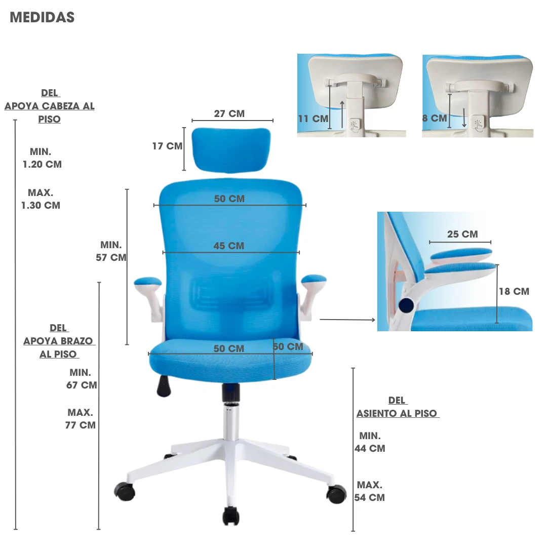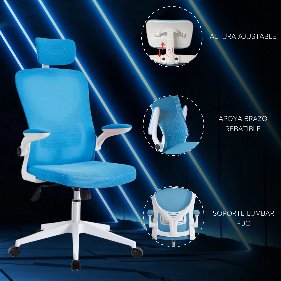 La silla PC Apoyabrazos Movible Apoyacabeza Ergonómica Celeste de la marca Tcweb es la elección perfecta para aquellos que buscan comodidad y estilo en su espacio de trabajo. Con un diseño ejecutivo y características ergonómicas, esta silla ofrece un apoyo óptimo para largas horas de trabajo o juego. Su respaldo de 49 cm de altura y 47 cm de ancho brinda un soporte adecuado para la espalda, mientras que el apoyacabeza ajustable proporciona un confort adicional. Además, su estructura cromada de metal y acabado en PVC la hacen resistente y duradera. Con su función giratoria y ruedas, podrás moverte fácilmente sin esfuerzo. Ajusta la altura del asiento y los apoyabrazos según tus necesidades para una experiencia personalizada. Con una capacidad de peso máximo de 150 kg, esta silla es adecuada para personas de diferentes tamaños y pesos. Disfruta de la comodidad y el estilo que ofrece la silla PC Apoyabrazos Movible Apoyacabeza Ergonómica Celeste de Tcweb en tu espacio de trabajo.