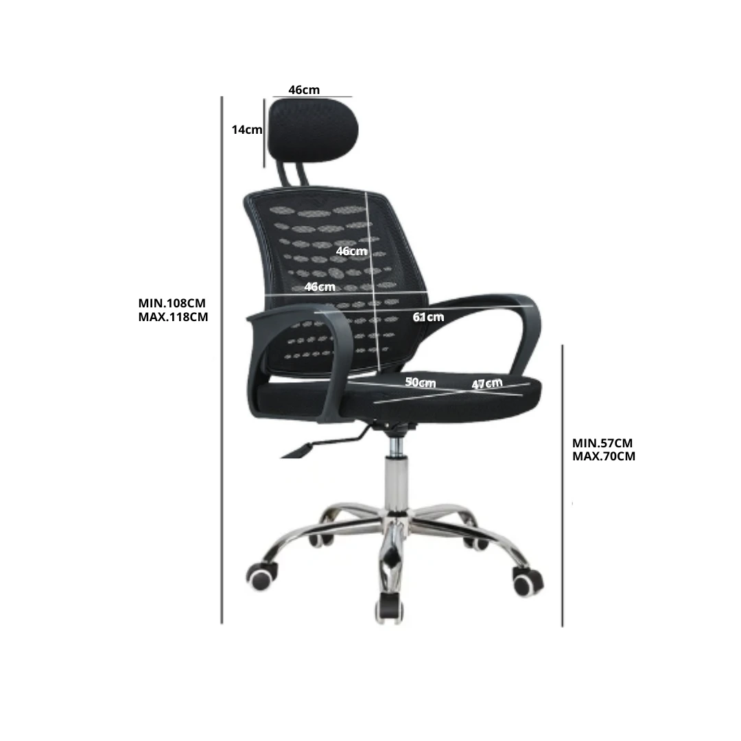 Este sillón ejecutivo de oficina modelo 032BX en color negro es ideal para aquellos que buscan comodidad y estilo en su lugar de trabajo. Con un respaldo ergonómico de 50 cm de altura y 43.5 cm de ancho, brinda un soporte adecuado para la espalda durante largas jornadas laborales. Además, cuenta con apoya cabezas para mayor confort.